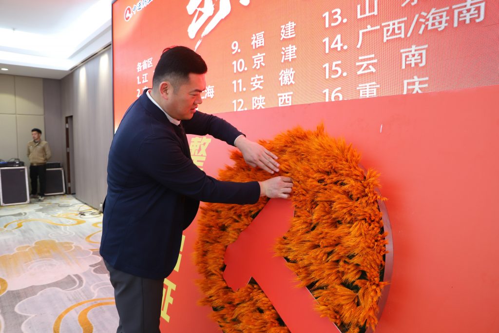 舞臺一側(cè),責任狀簽訂席莊嚴肅穆;舞臺中央,“仁和大麥墻”巍然矗立,金穗燦然,寓意業(yè)績“大賣”、碩果盈枝。在激昂奮進的樂曲聲中,各省區(qū)團隊依次登臺。團隊成員手持金色麥穗肅立后方,象征同心共擔、使命共赴。李總首先為公司十周年員工頒發(fā)紀念相框,致敬他們與中進風(fēng)雨同舟的堅守。隨后,各省區(qū)團隊將麥穗鄭重插入“大麥墻”,這一儀式感十足的動作,寓意著將目標扎根沃土,靜待豐收在望。